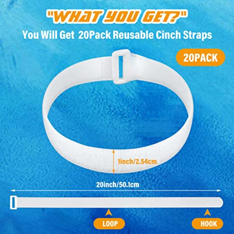 - Includes 20 white cinch straps with durable nylon, featuring a buckle and hook-and-loop closure for quick, secure tightening that you can count on.