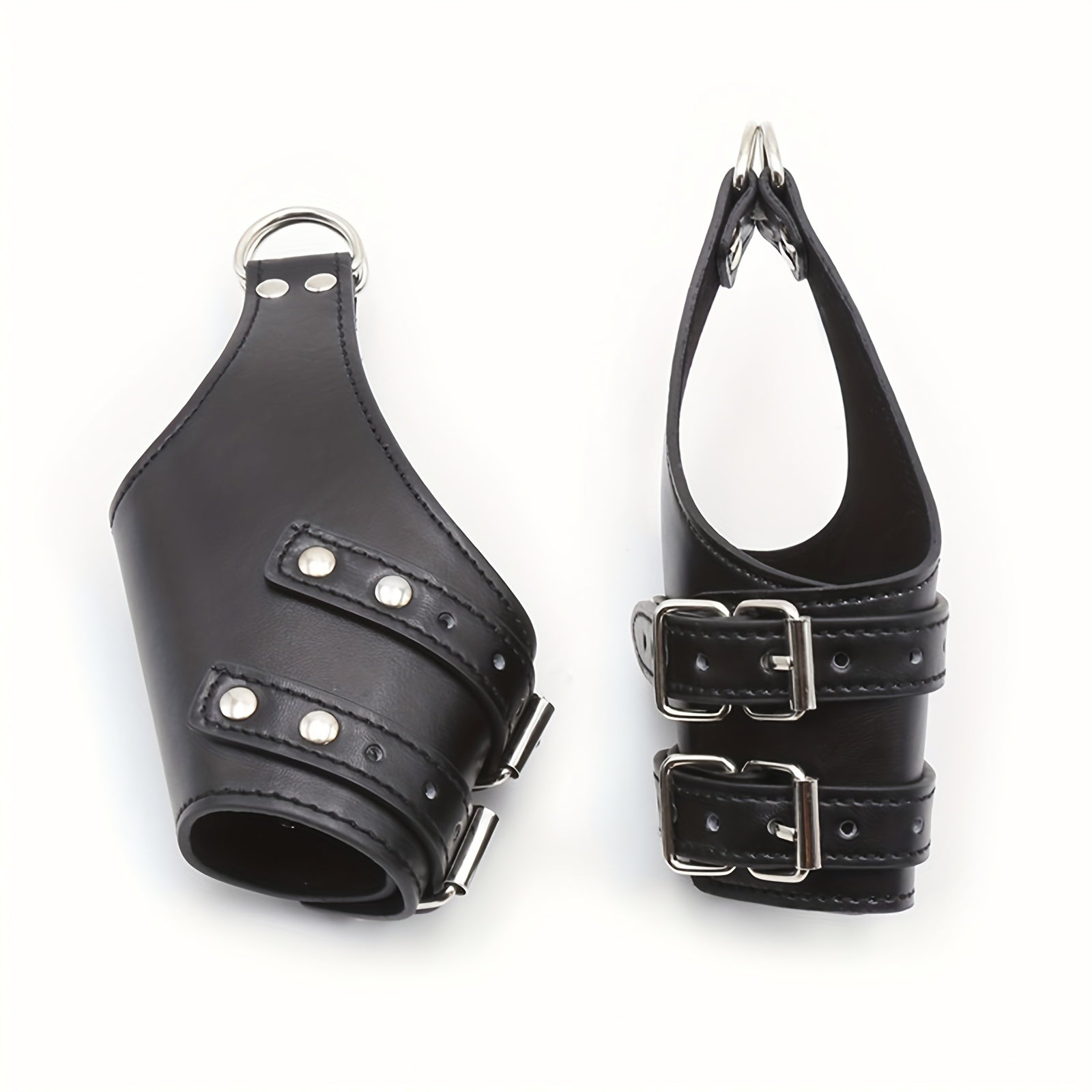 Turn any doorway into a playful scene with this Leather Hang On Door Handcuffs set for adults.