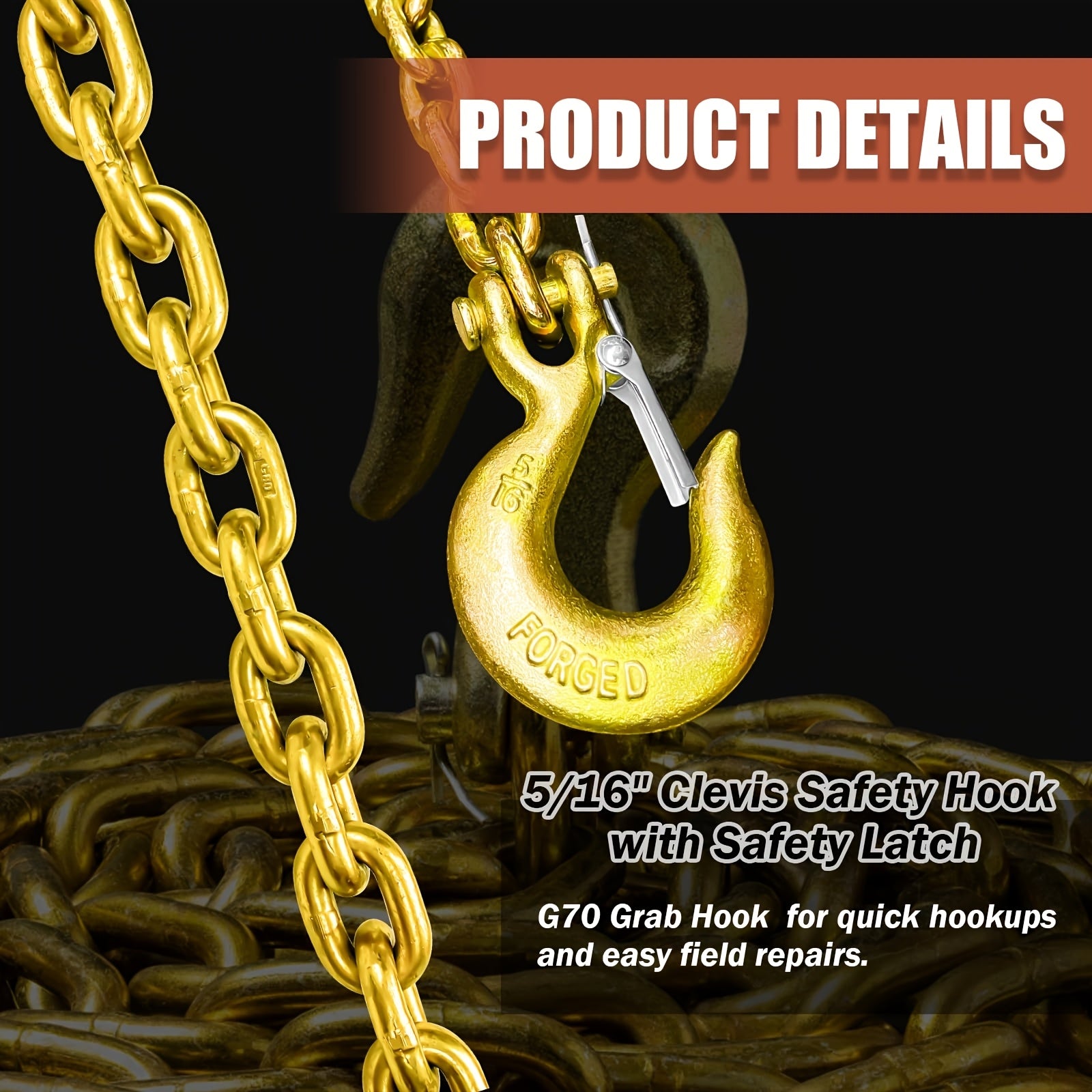 - G80 alloy steel delivers a proven 4,900 lbs maximum load capacity per chain, with a 5/16'' x 36'' format so you can fit a wide range of trailers and hitch setups.